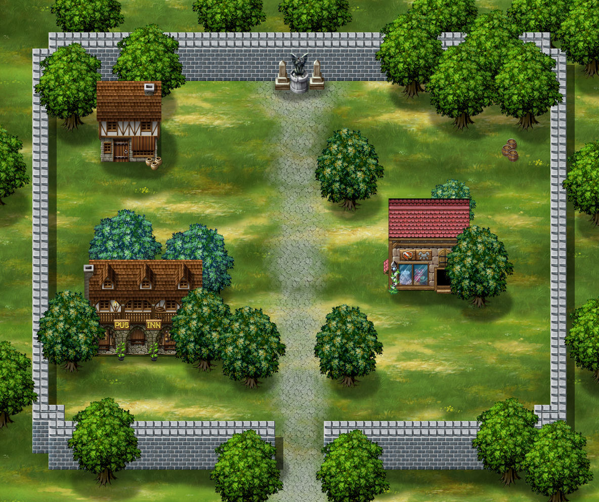 - Inspired by Suikoden, the heroes will find a devastated village that they will have to repopulate. You will be able to recruit more than 50 villagers, who will then have activities in the village (open shops, a casino, raise cattle, grow vegetables, open a pub, ask riddles, and so on...). For the shops, the quality of the products will rise with the number of villagers. Many of the sidequests will come from these villagers. (either to recruit them, or after they have been recruited)