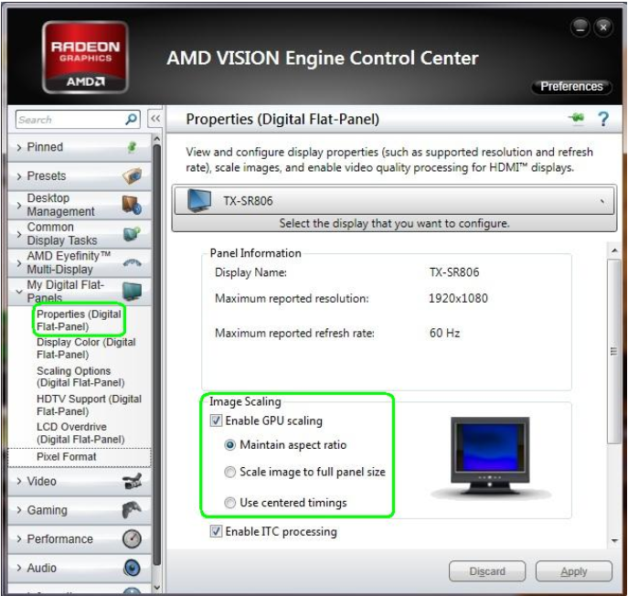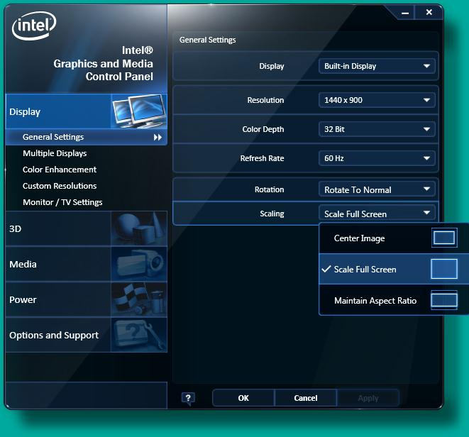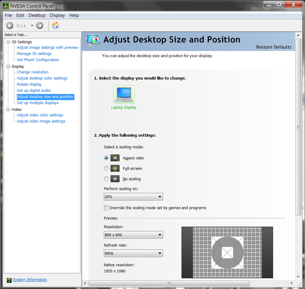 Once selected, you will simply need to choose the option on the right under "Scaling Mode:" for "Aspect Ratio". A similar process applies to the other types of video cards.