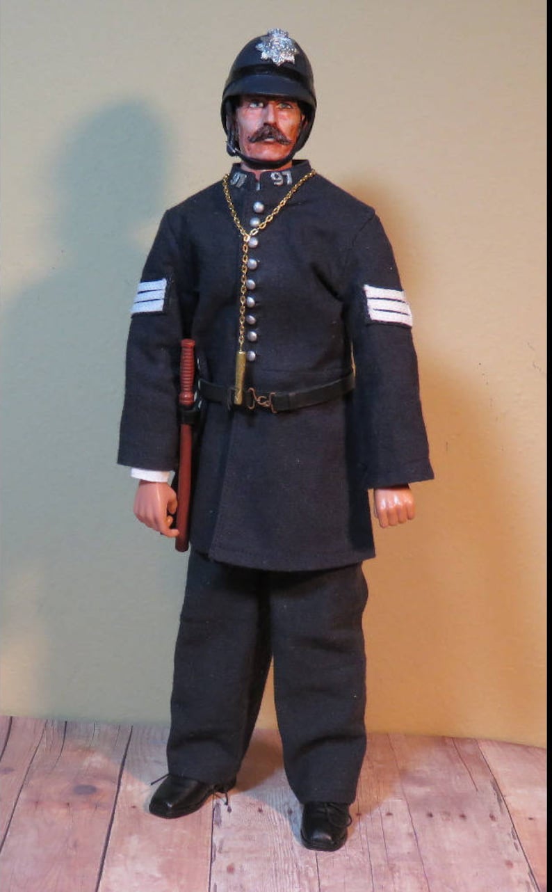 Description: Victorian Bobbies wore Victorian coats and signature custodial bucket helmets. See reference photos below. I would like a char sheet of bobbies. I would appreciate at least 1 male and one female. They used to have both blue and black uniforms, I suppose I do not have a preference. If you are going to do multiple, I would appreciate different skin tones as well, but is is not required for the game.