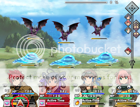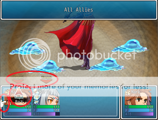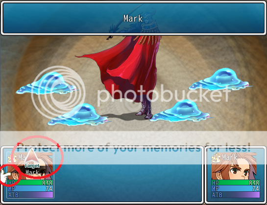 For skills that target all party members, I get a strange result, where the menu cursor and the battle cursor (both images used in the Battle Cursor) appear together, making a weird combination: