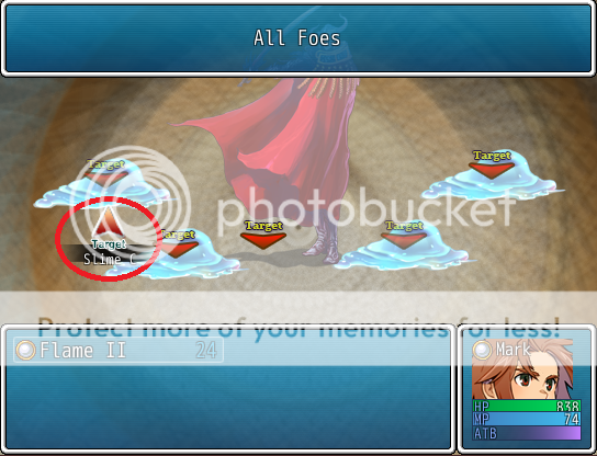 I was trying to accomplish something that takes out the help menu whenever I target a party member/allparty as well as an enemy/all enemies. For the cursor, I would like to keep the menu one active when I target a party member or all party members (in the last one, there would be one to four (depending how the members in the active party) flashing), and when I target one enemy i would like to keep the one that says "target" above the enemy name. When I was targeting all foes with an aoe spell, i would like to keep the second one, that is shown in the last picture and it's not selected.