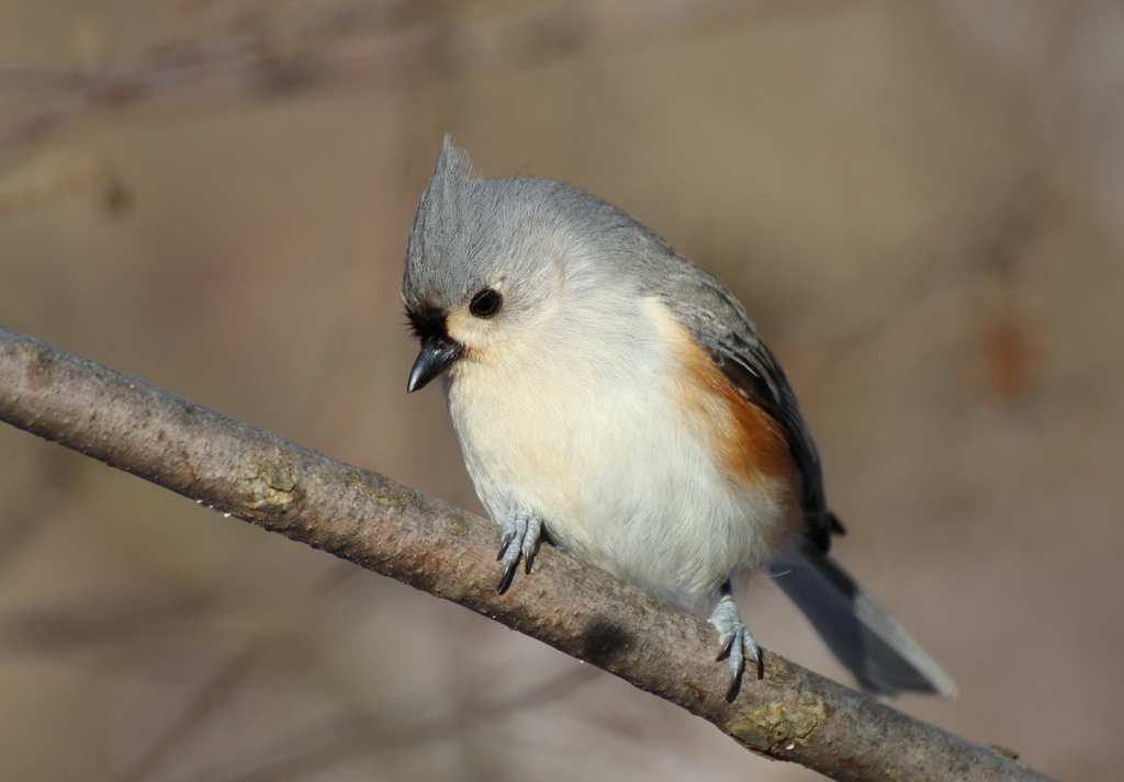 titmouse because they are everywhere and entertaining to watch (and yes, I do find the name humorous like a sophomoric jerk would) but just look at the fluffy tufted cutie and tell me she's not awesome. They are also a lot easier to watch than chickadees and other similar foragers, because they have a laid back but methodical attitude towards work that I easily sympathize with.