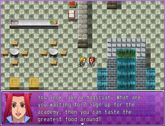 A clumsy, hapless boy who can't do a thing right. He originally wanted to be a squire for a Knight in Galapoca fortress, but they wouldn't take him in. Dreading the prospect of being sent back to his faraway home, he eventually finds another job working for the resident magician of Galapoca Fortress. It is one disaster after another though, and the first job he messes up leads to his introduction to the party...