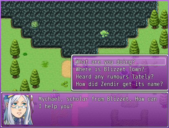 Zaphilia has had to fend for herself since her parents abandoned her after an incident in her childhood. Since then, she's made friends with some of the locals, having to keep her magical ability hidden for the most part for fear of repercussions. However, her secret is let out and she quickly makes enemies, thus prompting the beginning of the game. Once her mind is made up, it cannot be changed. She is determined, curious and resourceful, a valuable asset to any party exploring the land of Zendir.